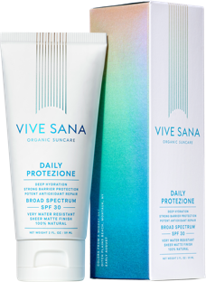 Daily Protezione is a deeply moisturizing organic SPF 30 face cream with a lightly tinted, semi-matte finish. It protects skin against dry climates, pollution and UV damage. This nutrient-rich, chemical-free cream improves skin moisture, tone and elasticity immediately and over time.